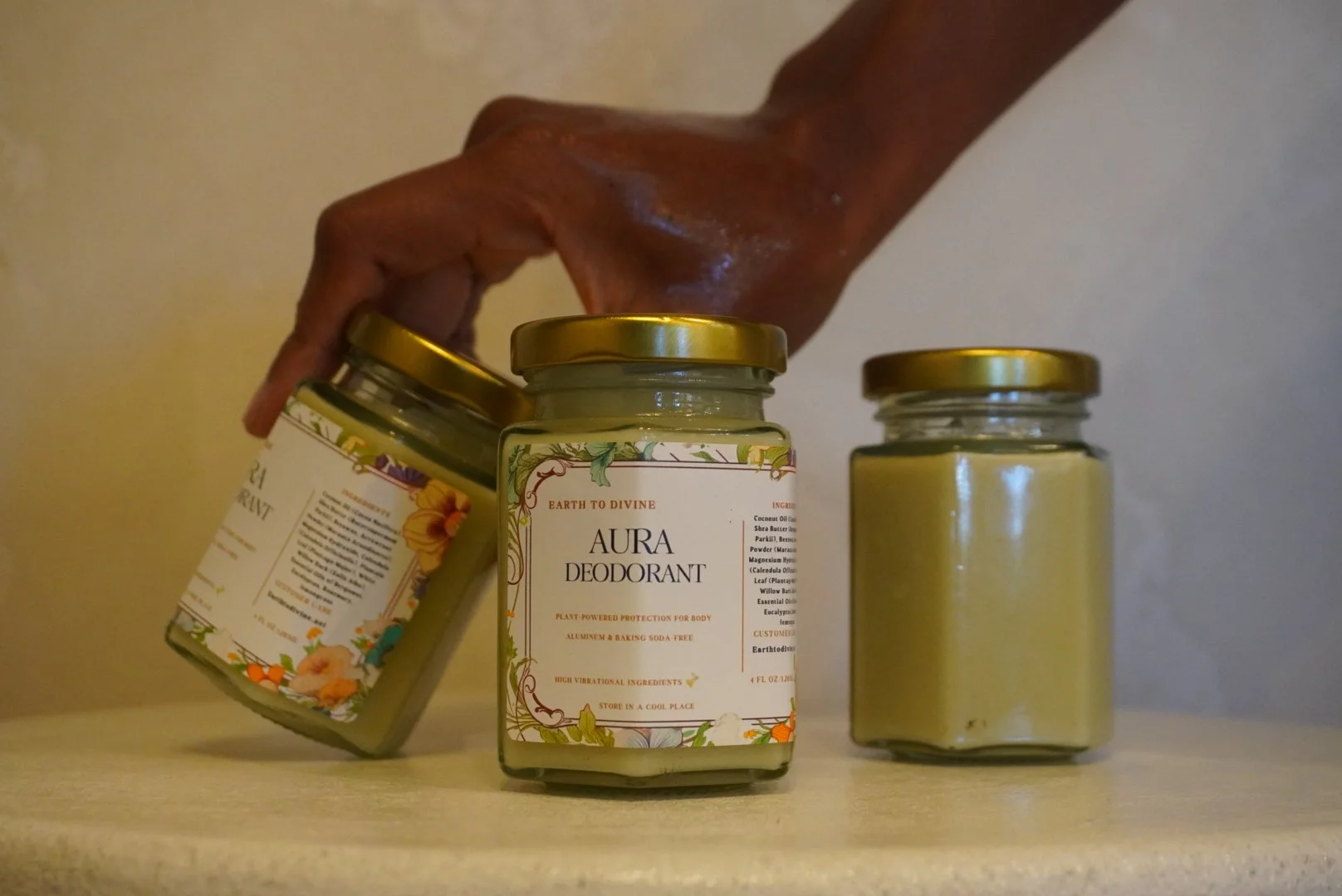 Free from baking soda, aluminum, and synthetic fragrances. This deodorant is your daily act of self-care and sovereignty. Available in 2oz and 4oz jars to fit your lifestyle, whether you’re on the go or at home in your temple.